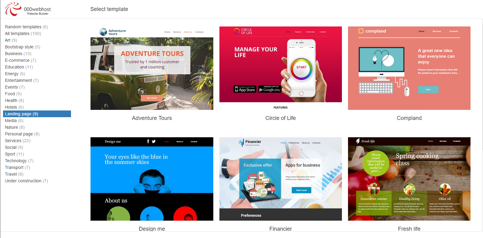 Una de las opciones que aparecen es la de construir una pgina facilmente. Pulsando sobre ella nos aparecen gran cantidad de plantillas, sobre las que queremos que se base la pagina: