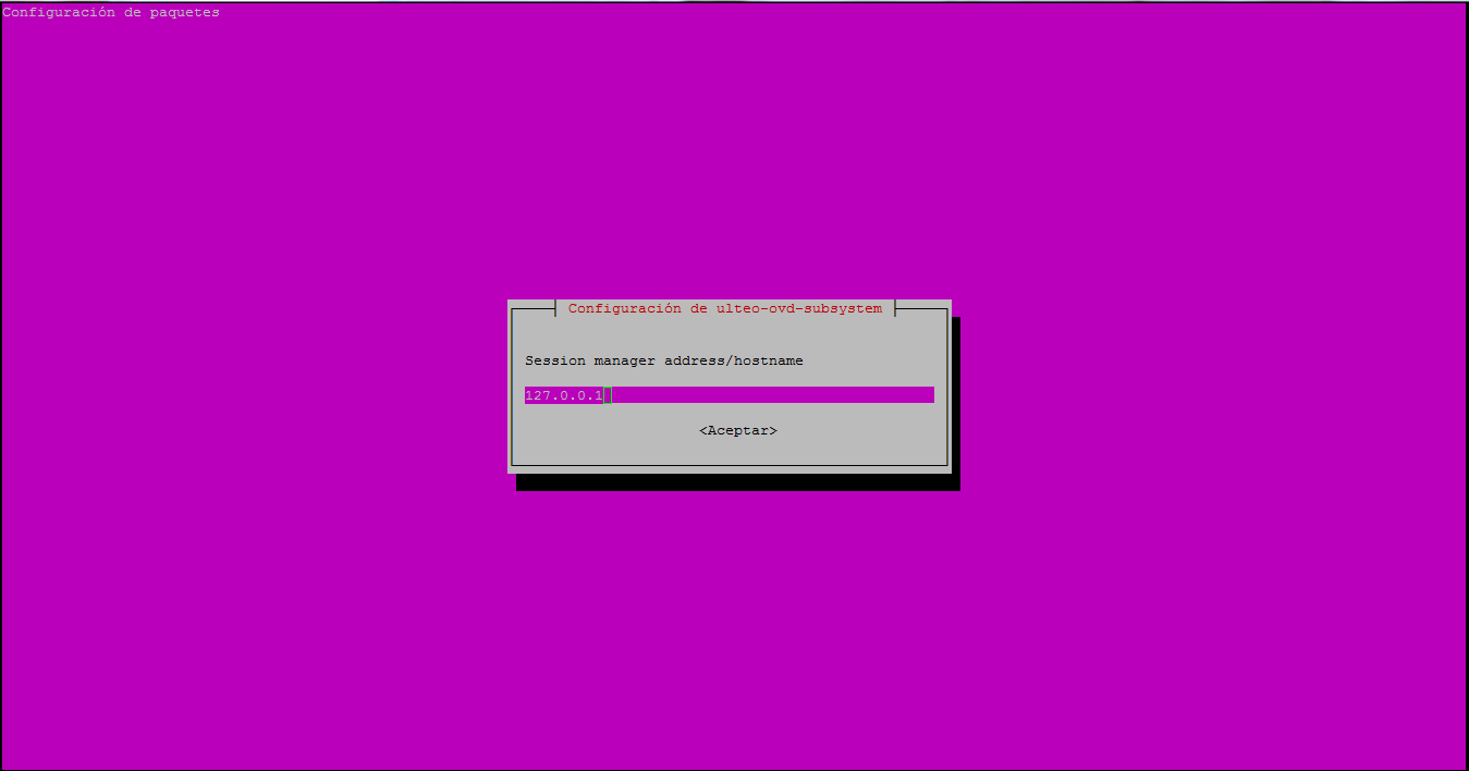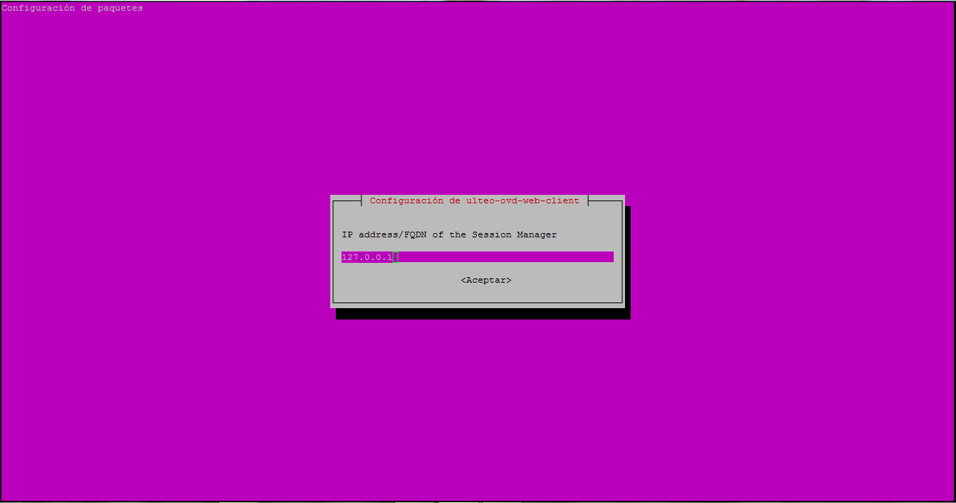 Ahora nos pedirá la ip del session manager (en nuestro caso es localhost)