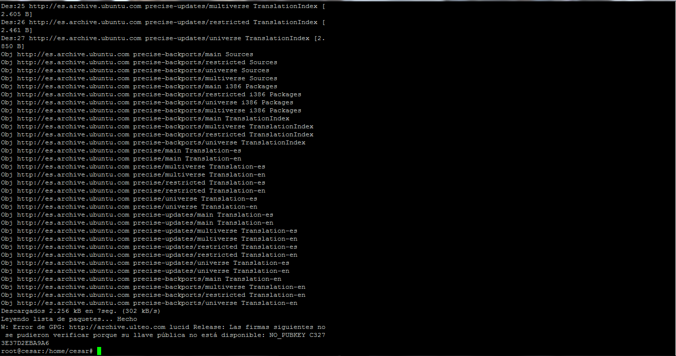 Lo siguiente que tenemos que hacer es añadir el repositorio de ulteo a sources.list y luego hacer apt-get update.