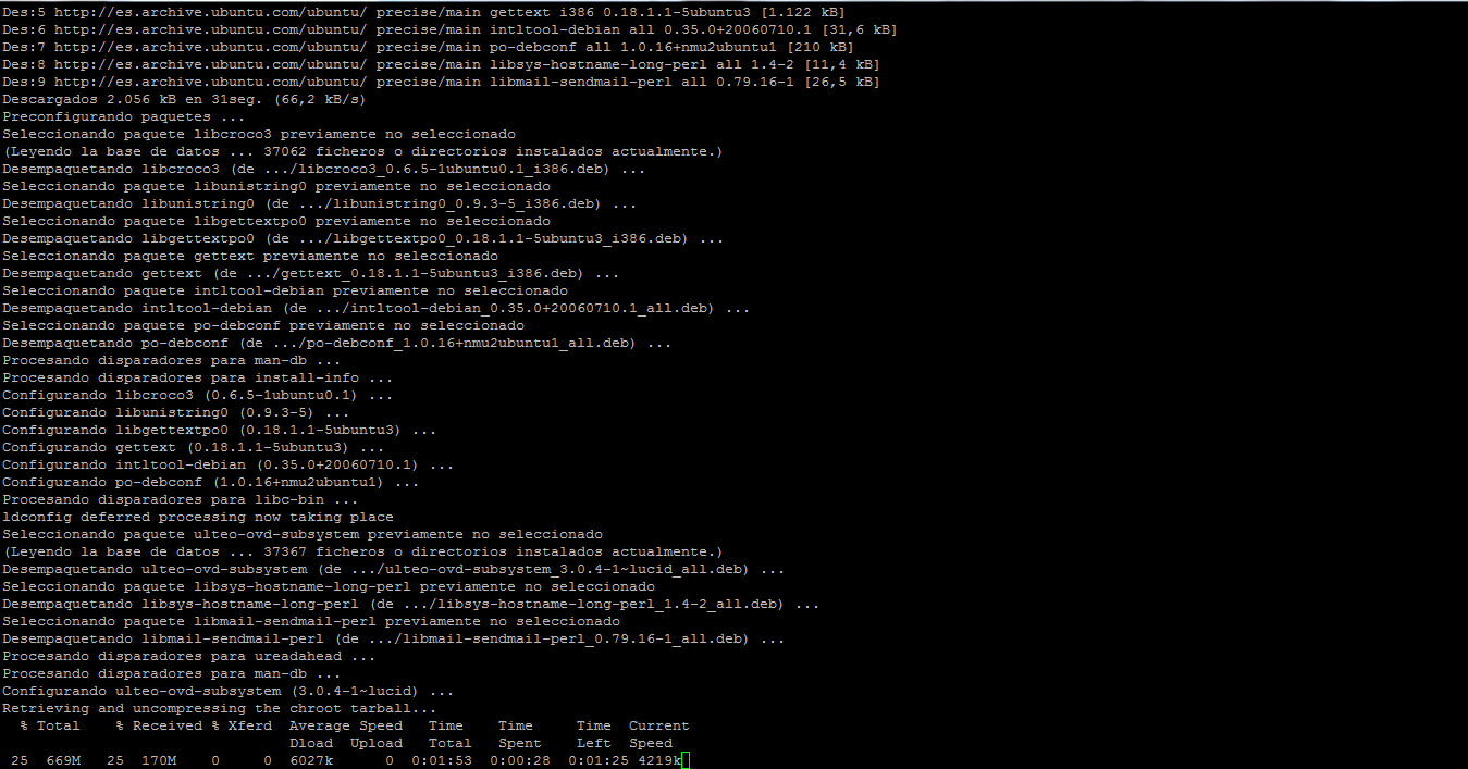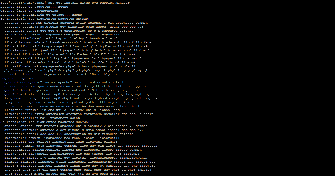 Y ahora ya podemos instalar ulteo con el siguiente comando.