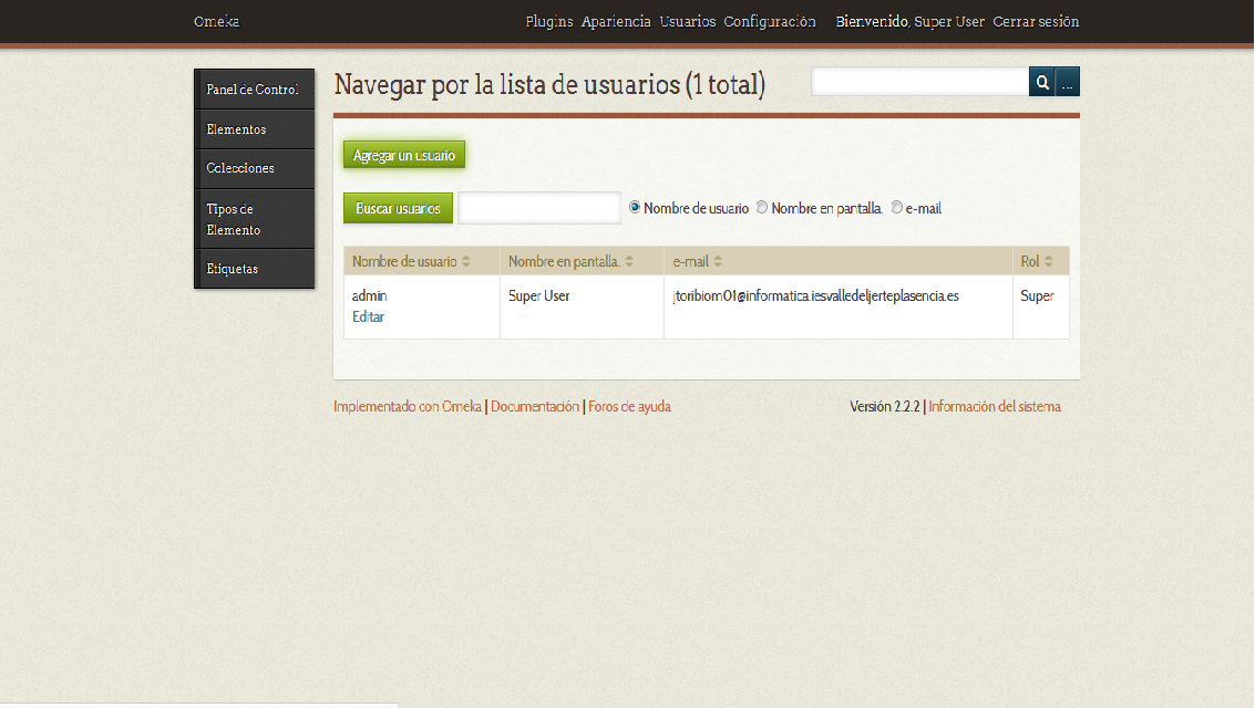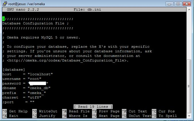 Una vez hecho podemos pasar a la descarga del archivo (wget http://omeka.org/files/omeka-2.2.2.zip) y descomprimirlo (unzip omeka-2.2.2.zip)