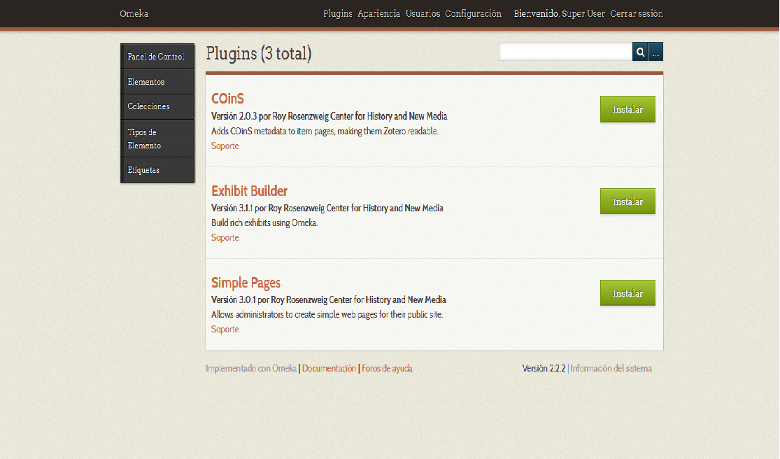El plugin que he escogido se llama «Exhibit Builder» y nos permitirá realizar exposiciones en nuestra página web.