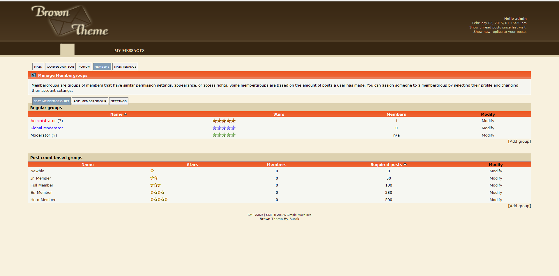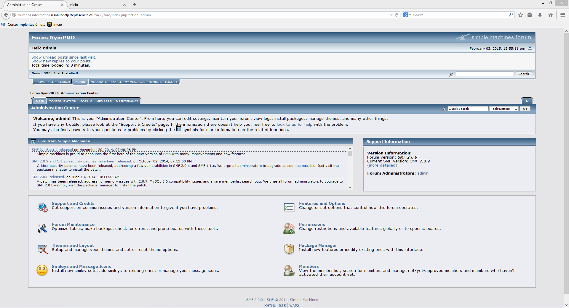 Desde el propio panel de administración del foro, podemos realizar todas las tareas de mantenimiento de este, como cambiar el tema del foro, cambiar privilegios de usuarios, establecer los distintos subforos, o incluso nos permite hacer backup de la propia base de datos del foro.