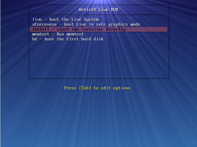 ArtistX es un Ubuntu Intrepid Ibex preparado para artistas: viene por defecto con un montón de aplicaciones multimedia. Se basa en Ubuntu GNU / Linux y contiene prácticamente todo el audio disponible de forma gratuita, gráficos en 2D y 3D, y software de vídeo. No necesita ser instalado, y arranca directamente en un sistema en ejecución sin tocar los discos duros. Las cosas que hagas con ArtistX pueden guardarse en cualquier dispositivo USB o grabarlo en un CD o DVD sin tener que usar el disco duro.