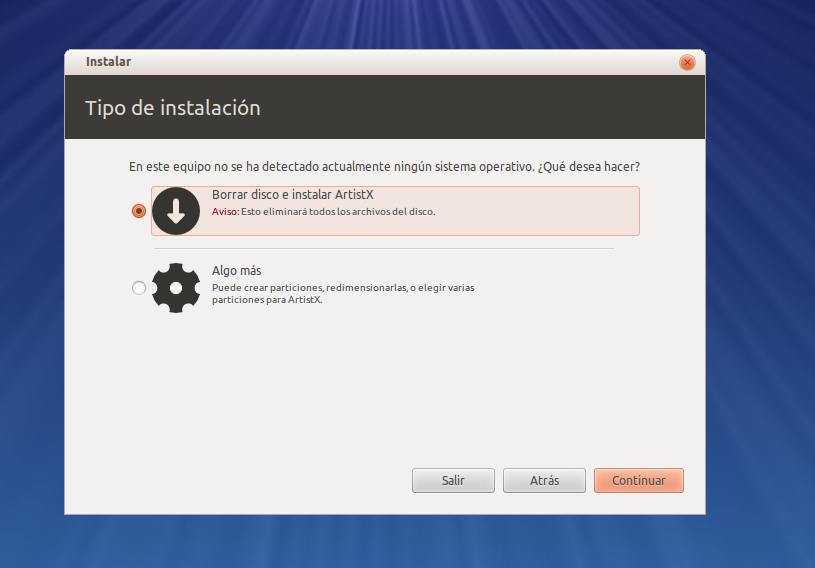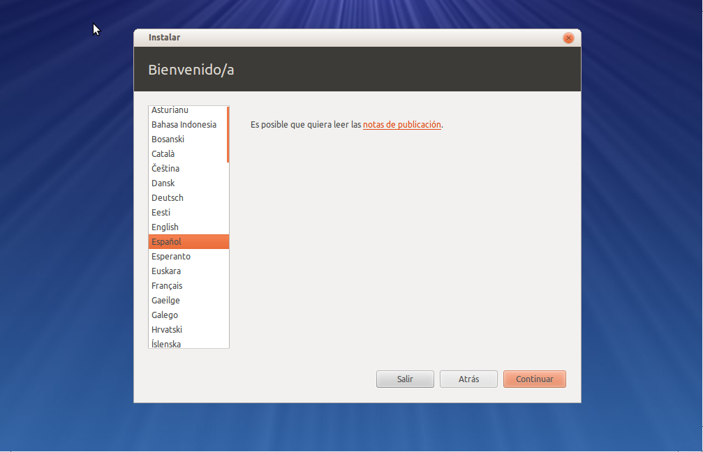 Procedemos a la instalación y es como una instalación de un Ubuntu.