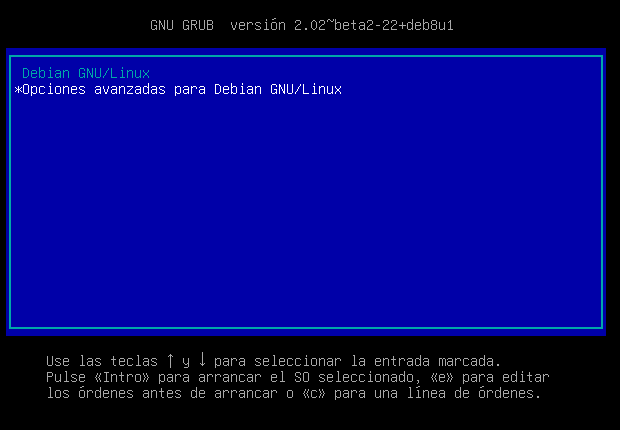 En el primer paso simplemente le damos a «Opciones avanzadas para Debian GNU/Linux»