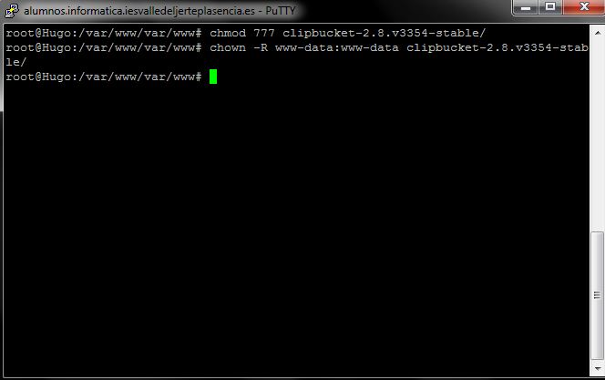 En la instalción para poder tener permisos y poder manejar todo tipo de archivos tendremos que entrar en nuestro servidor, en este caso con Putty y darle permisos recursivos a nuestra carpeta de instalación.