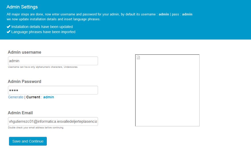 En el siguiente paso elegiremos un nombre de usuario y contraseña para poder administrar nuestro sitio web.