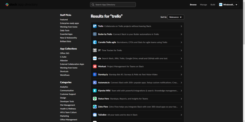 1. En el Directorio de aplicaciones de Slack, visita la página Trello.