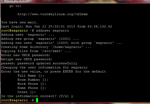 adduser sagrario