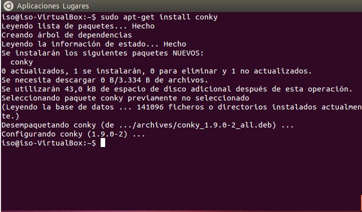 Conky se encuentra ya en los repositorios de ubuntu, por lo que para su instalación solo debemos abrir el terminal y poner: sudo apt-get install conky.