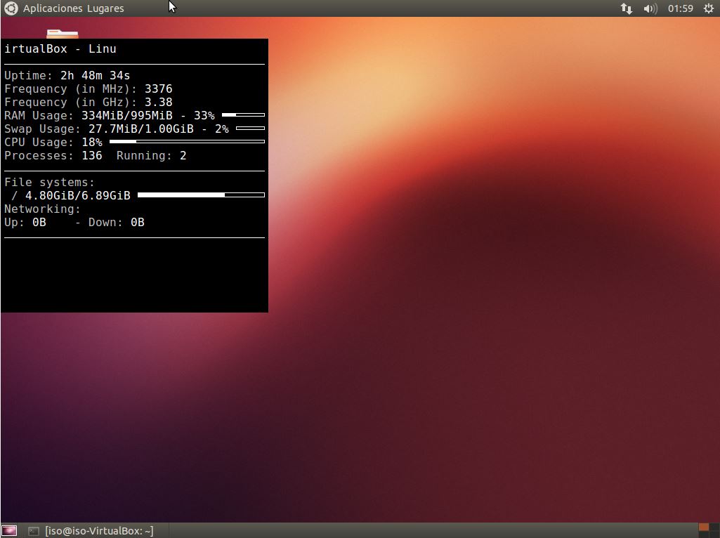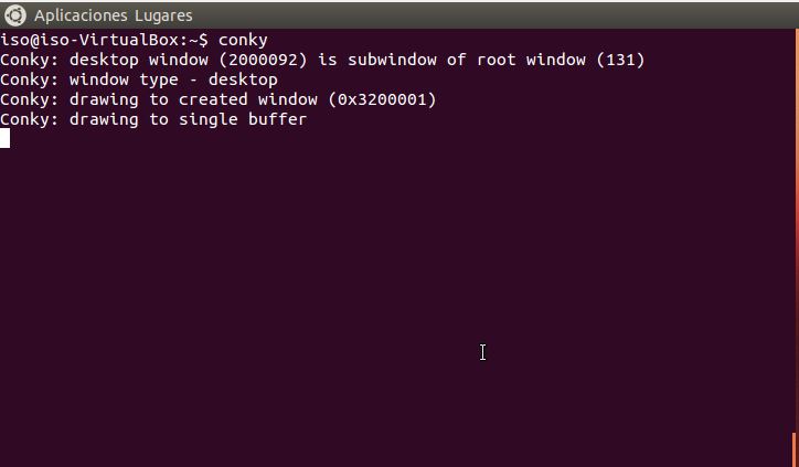 Después de instalar conky, nos iremos de nuevo al terminal para ejecutarlo y pondremos: conky y se ejecutara.