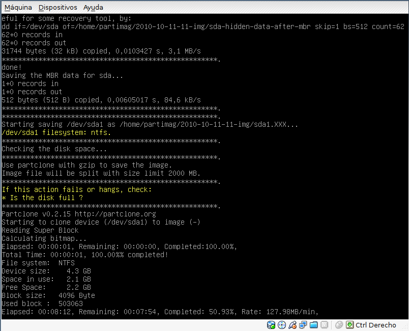 Elegimos «disco local como imagen», creamos una imagen de disco completo.