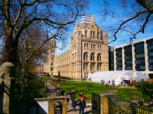 En el cual nos tiramos hasta la hora de comer nuestro bocadillito de jamón, 🙂 en el parque de la entrada al Museo de Historia Natural de Londres