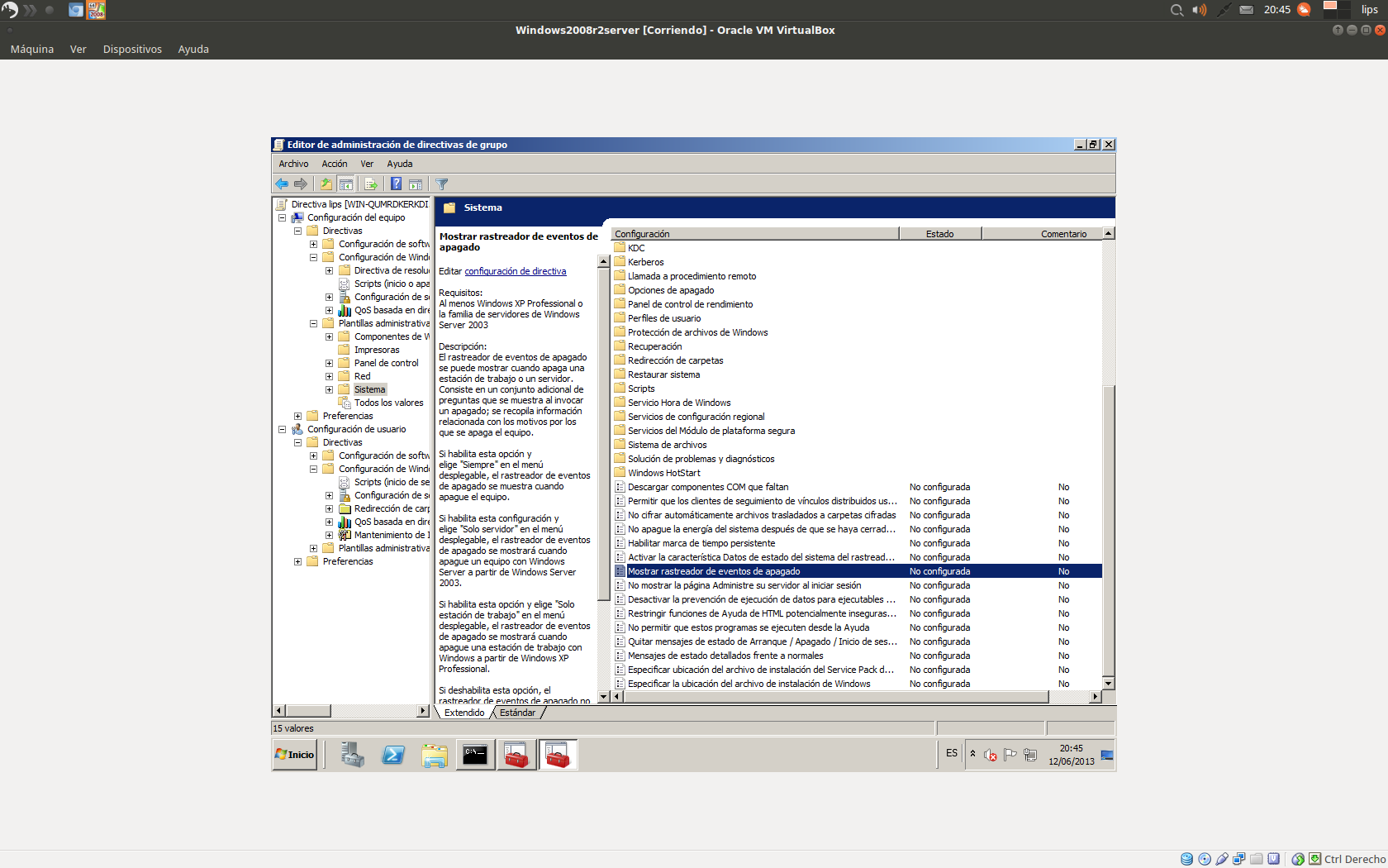 que permite que todos los equipos que estén en el dominio tengan esta misma opción cada vez que se apaguen, que tengan que poner el motivo y así poder llevar mejor el mantenimiento y el control, ya que puede haber ciertos equipos (aparte de los servidores) que no nos interese que se apaguen y si lo hacen nos interese saber el motivo.