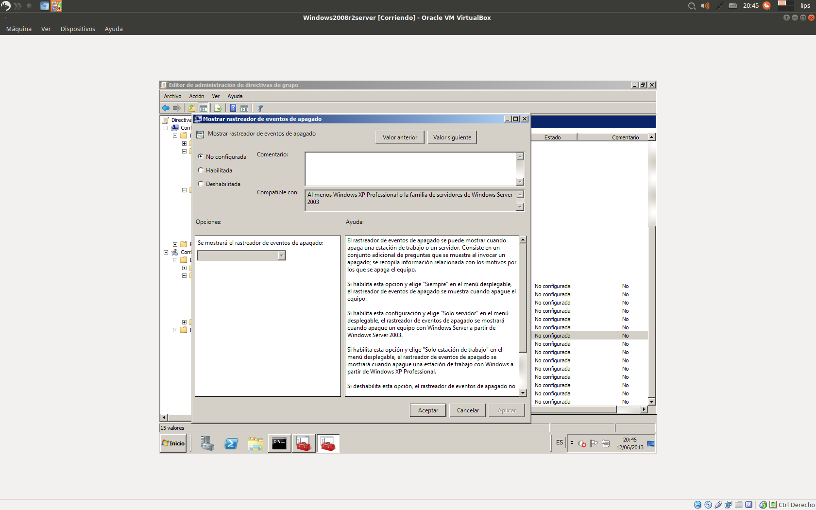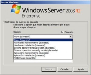 Cuando vamos a apagar un servidor windows siempre nos pide un motivo por el cual le vamos a apagar, si está programado, mantenimiento, problema de seguridad, etc…Esto es un buen sistema para llevar al día todo lo que ocurre en el servidor y así llevar mejor el mantenimiento, pues existe una directiva llamada «Rastreador de eventos de apagado»
