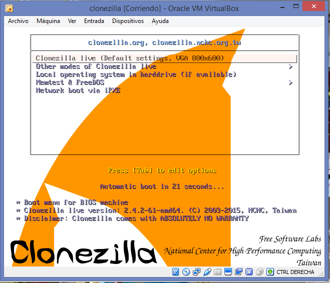 Clonezilla es una pequeña distribución de GNU/Linux de arranque para equipos x86/amd (x86-64).