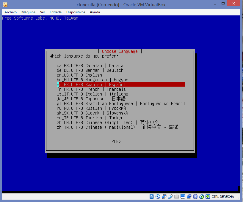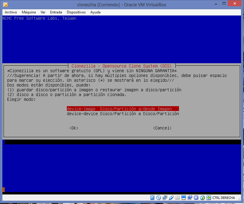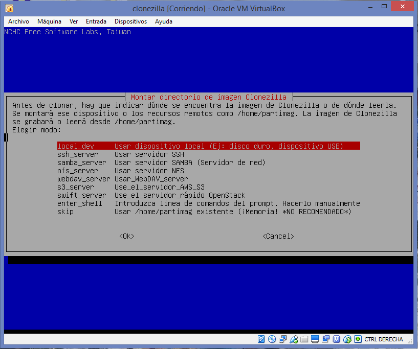 A continuación voy a mostrar el entorno del que Clonezilla dispone y opciones que nos da.