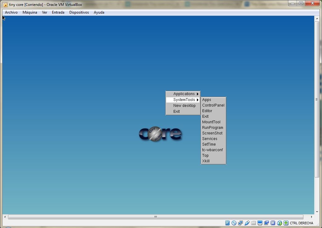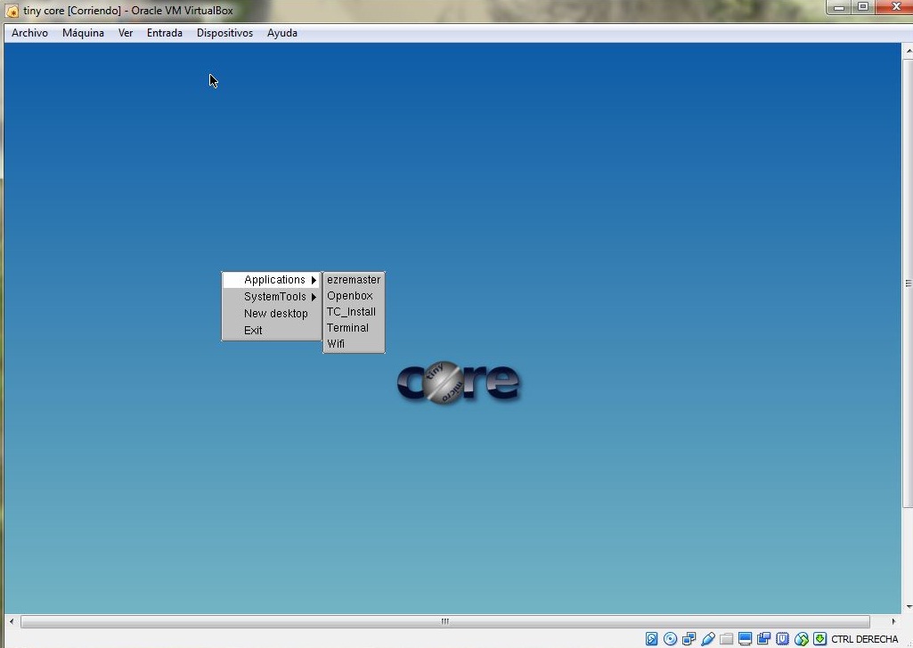 Montamos la iso en nuestra máquina virtual y en unos 30 segundos ya estamos funcionando con ella.  Lo que tenemos que hacer es click botón derecho y pinchar en TC_install, para instalar el sistema operativo y podamos arrancarlo desde el disco duro.