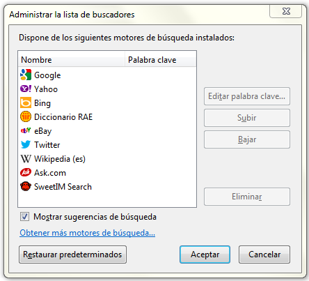 3. Después eliminamos los motores de búsqueda, los cuales aparecen en la parte superior derecha del navegador