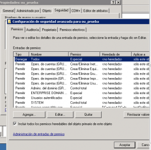 Al crear una unidad organizativa tenemos una opción marcada por defecto «Proteger contenedor contra eliminación accidental».Esto se hace para que no podamos borrar la unidad por accidente ya que los daños que se pueden ocasionar suelen ser bastante importantes.