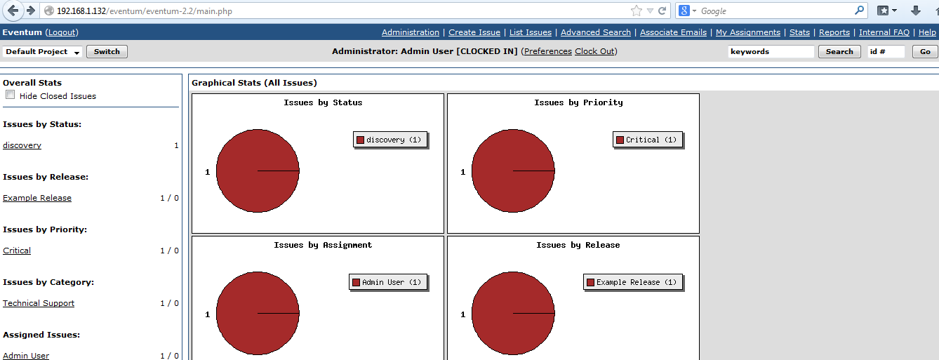 Eventum es un sistema de seguimiento de incidencias, de uso fácil y flexible, que puede ser utilizado por un departamento de apoyo al seguimiento de las solicitudes de apoyo técnico entrantes, o por un equipo de desarrollo de software para organizar rápidamente las tareas y los errores.