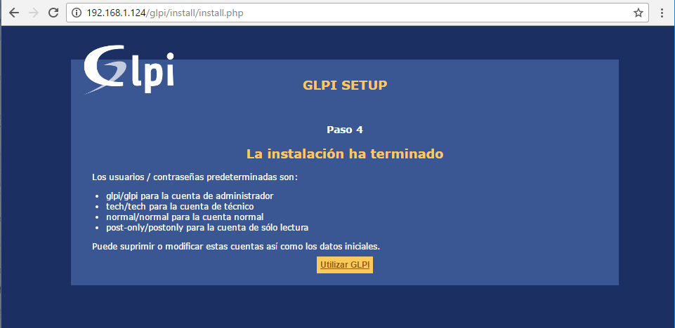 como nos indica la misma página nos recomienda borrar el archivo install.php y cambiar las contraseñas por defecto.