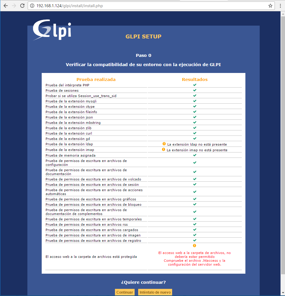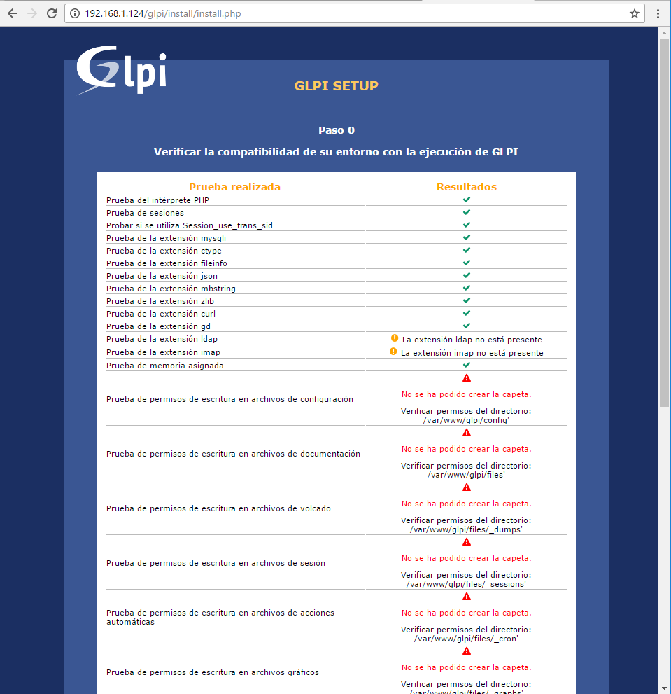 Al realizar los cambios se nos mostrará la pantalla que se muestra a continuación con todo en verde excepto uno que le tengo yo así por iniciativa mía