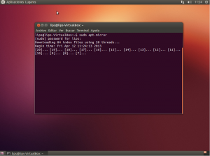 4º-Lo siguiente es bajarse los arvhivos para el repositorio, todos los archivos son unos 90 GB, para descargar los archivos debemos meter el comando (como sudo) apt-mirror y empezará la descarga (la descarga se realizará en el directorio que tengamos puesto en el mirror.list)