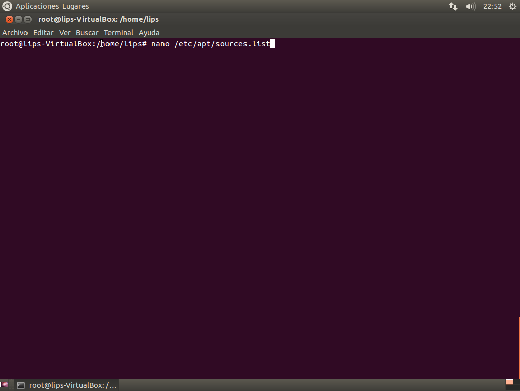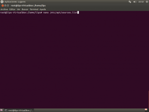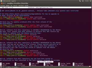 6º-Para finalizar editaremos el archivo sources.list , este archivo se lo pasaremos o lo editaremos en todos los ordenadores que queramos que usen nuestro repositorio, tenemos que editarlo y poner la ip del pc donde estamos haciendo el repositorio, nos debería quedar algo parecido a la imagen y ya estaría hecho nuestro repositorio.