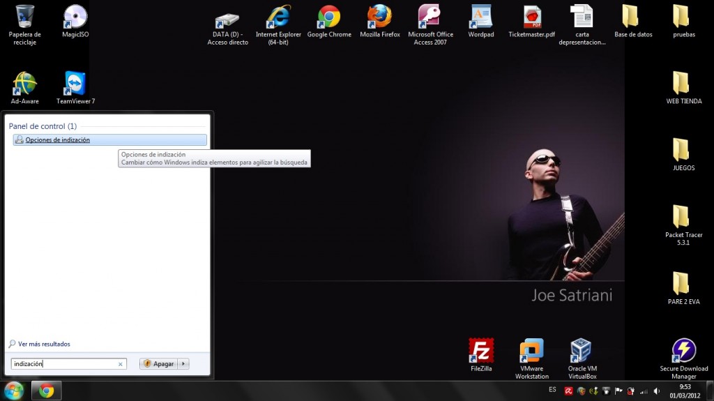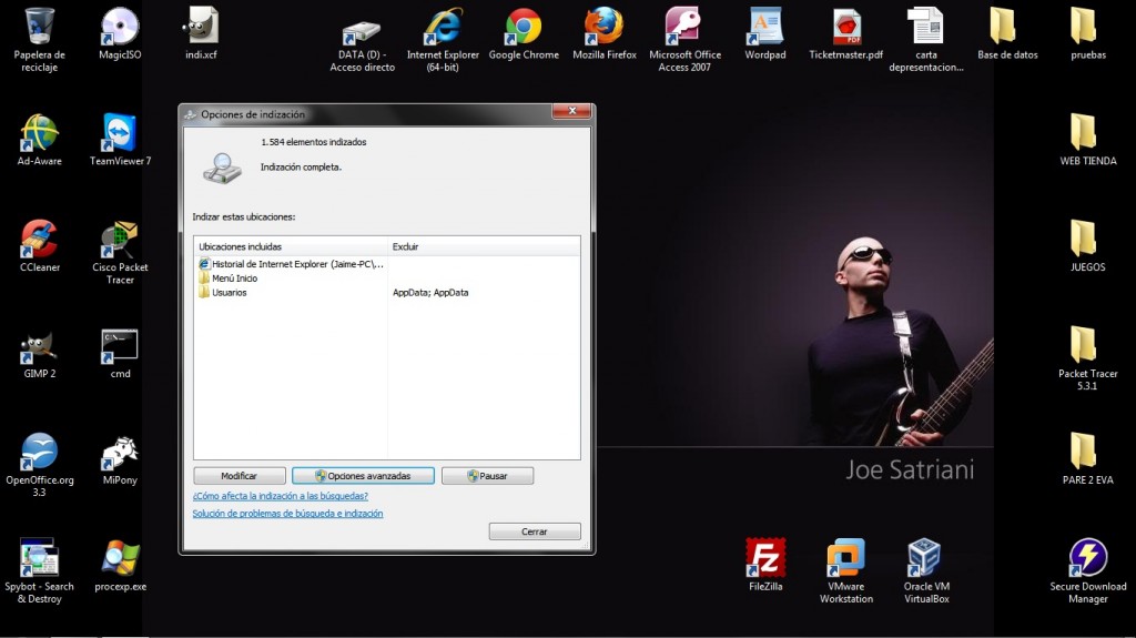 y luego enPanel de control. En el cuadro de búsqueda, escriba opciones de indización y, a continuación, haga clic en Opciones de indización.