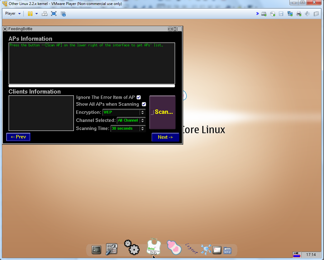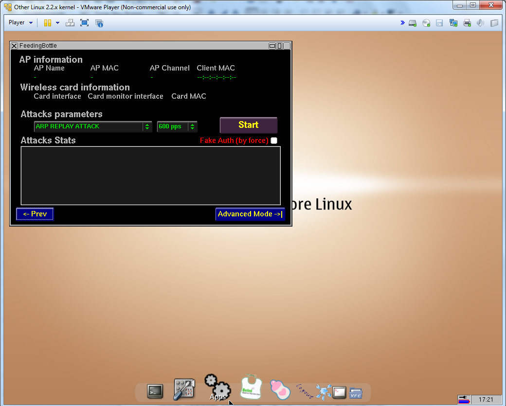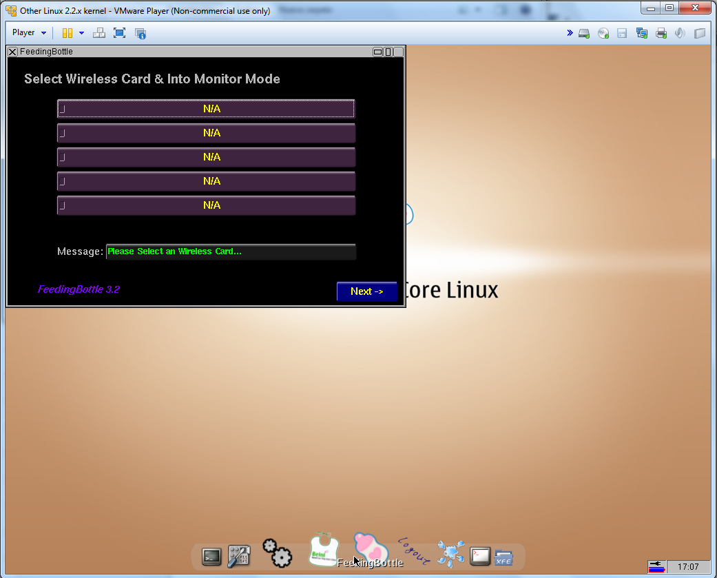 He instalado el beini 1.2.2 en Vmware player. Es una aplicación para descifrar contraseñas wi-fi.