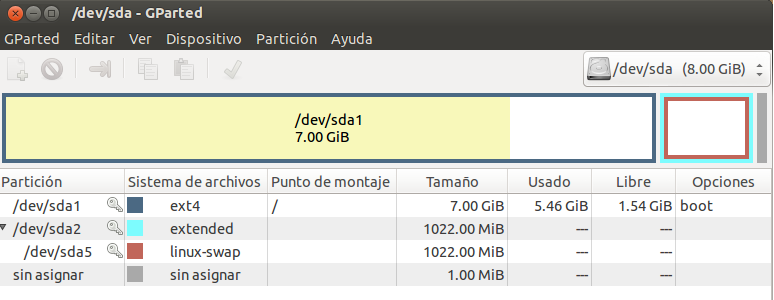 GParted es un editor de particiones gratuito para gestionar gráficamente las particiones del disco. Con GParted puede cambiar el tamaño, copiar y mover particiones sin pérdida de datos