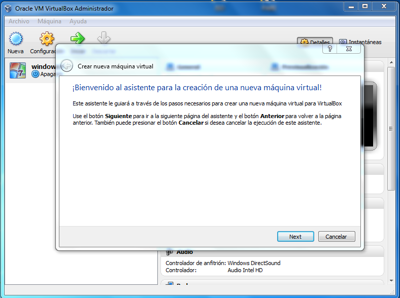 Lo primero que hacemos es crear una nueva maquina virtual. Le damos a nueva y siguiente