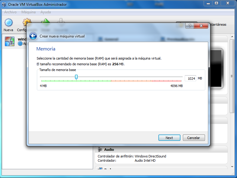 Ahora le tenemos que asignar la memoria RAM, en este caso le ponemos 1 Gb