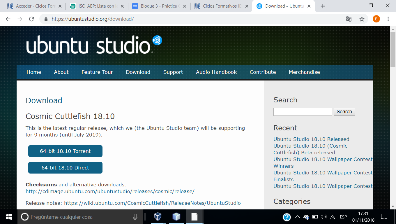 Buenas hoy vamos a instalar Ubunto Studio en VirtualBox. Lo primero que tenemos que hacer es entrar en la pagina oficial y de ahí vamos a descargar la imagen ISO, aquí dejo el enlace (https://ubuntustudio.org)