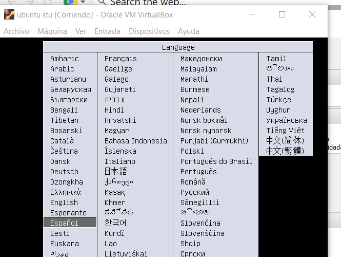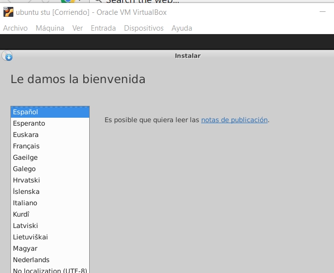 y ahora nos vamos a empezar de Instalamos el sistema operativo, empezamos eligiendo el idioma: