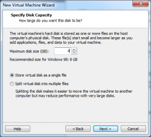 Elegimos el tamaño del disco duro y si queremos que la máquina se guarde en un solo archivo o en varios:
