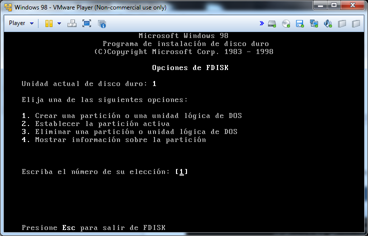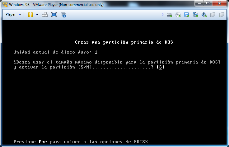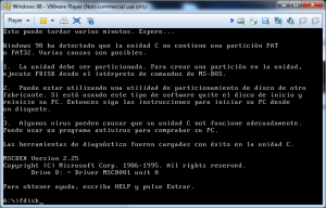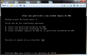 En el MS-DOS escribiremos fdisk para crear la partición: