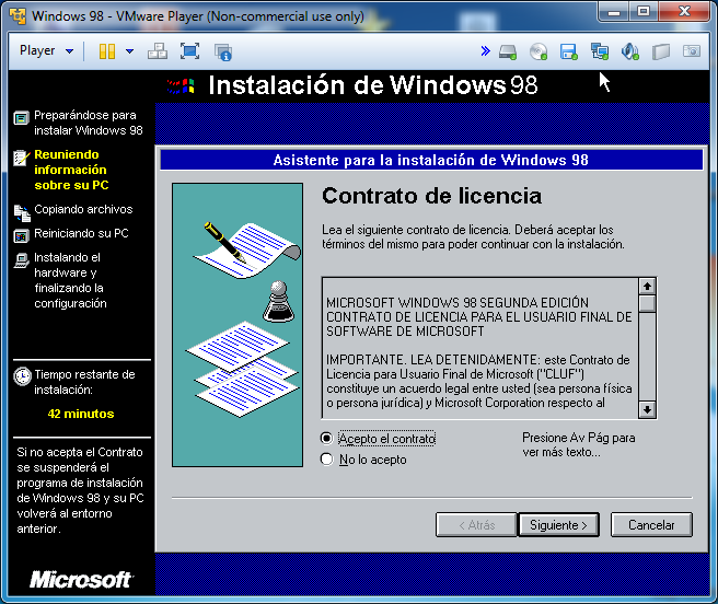 Aceptamos el Contrato de Licencia y le damos a siguiente: