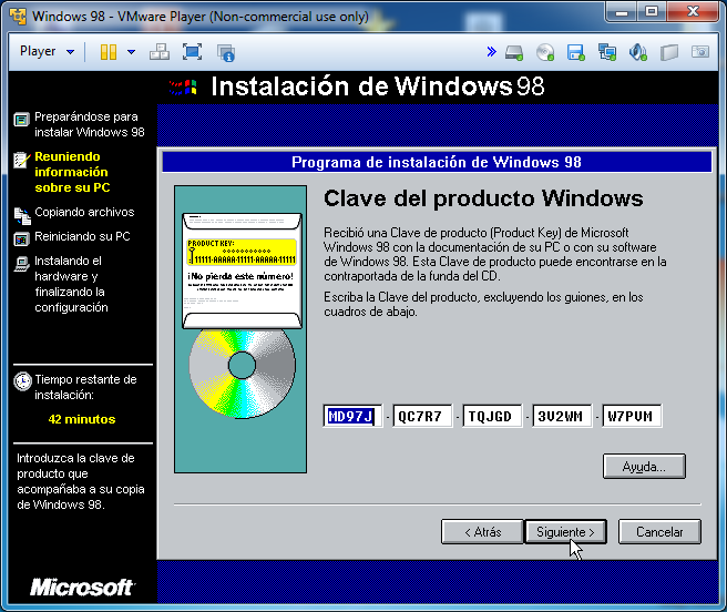 Nos pedirá la clave del producto, la escribimos y le damos a siguiente: