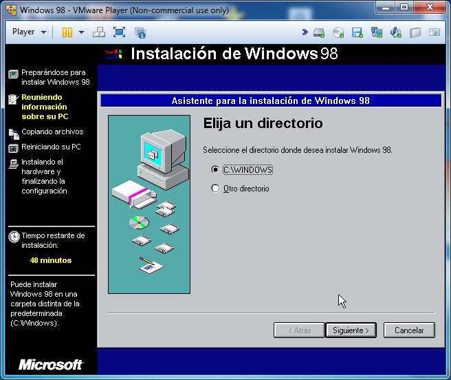 Nos dará a elegir la ruta donde se instalará en este caso dejaremos la de por defecto «C:\WINDOWS» y le damos a siguiente: