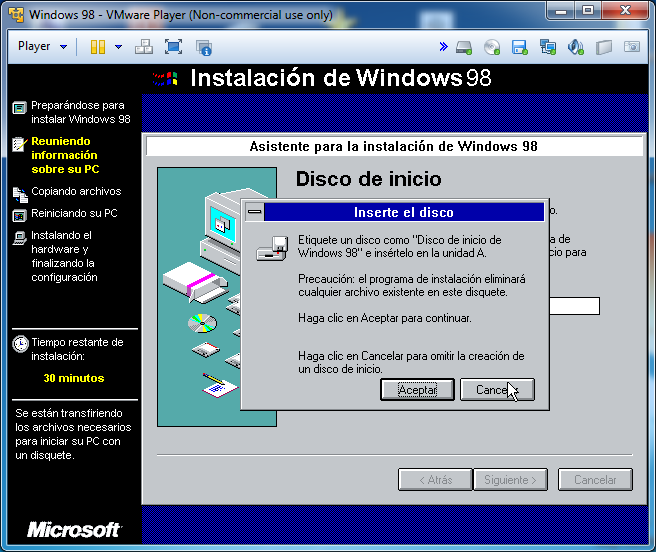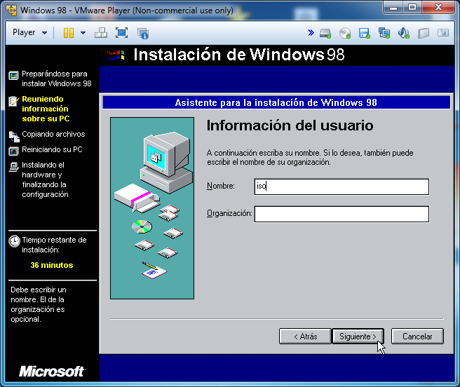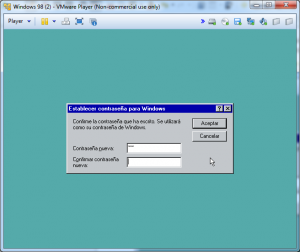 Una vez terminada la instalación, se iniciará windows 98 y nos pedirá el usuario y una contraseña, en la contraseña deberemos introducir la que queremos ponerle al usuario: