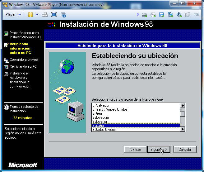 Seleccionamos el país y le damos a siguiente: