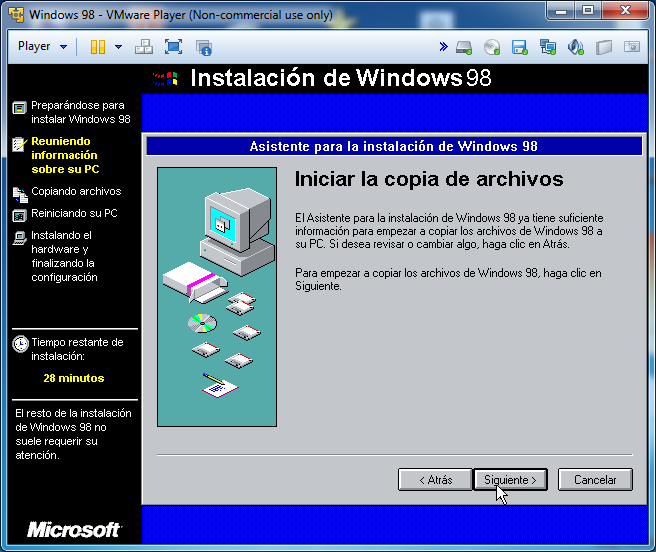 Le damos a siguiente para comenzar la copia de archivos: