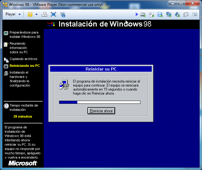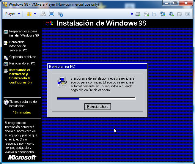 El equipo se reiniciará de nuevo: