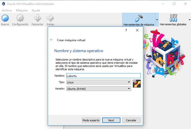 2. Le damos un nombre a ese sistema operativo en mi caso (Lubuntu) y pulsamos next .