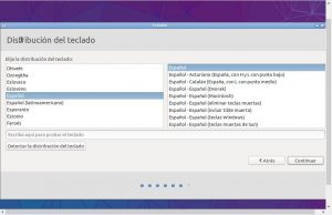 12. En este paso tenemos que seleccionar nuestra distribución de teclado en mi caso (Español). Damos click al botón Continuar.