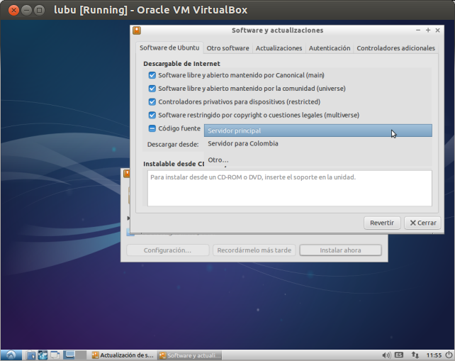 19. En la ventana Actualización de software podemos pasar de una vez a descargar e instalar o como yo recomiendo, verificar de donde se descargaran pulsando click al botón de Configuración.