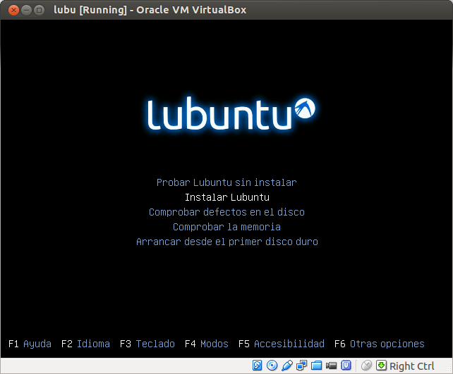 7. En la siguiente pantalla se nos muestra varias opciones. Si queremos probar antes de instalar debemos elegir la primera opción (Probar Lubuntu sin Instalar). En nuestro caso queremos instalar el sistema operativo elegiremos (Instalar Lubuntu).